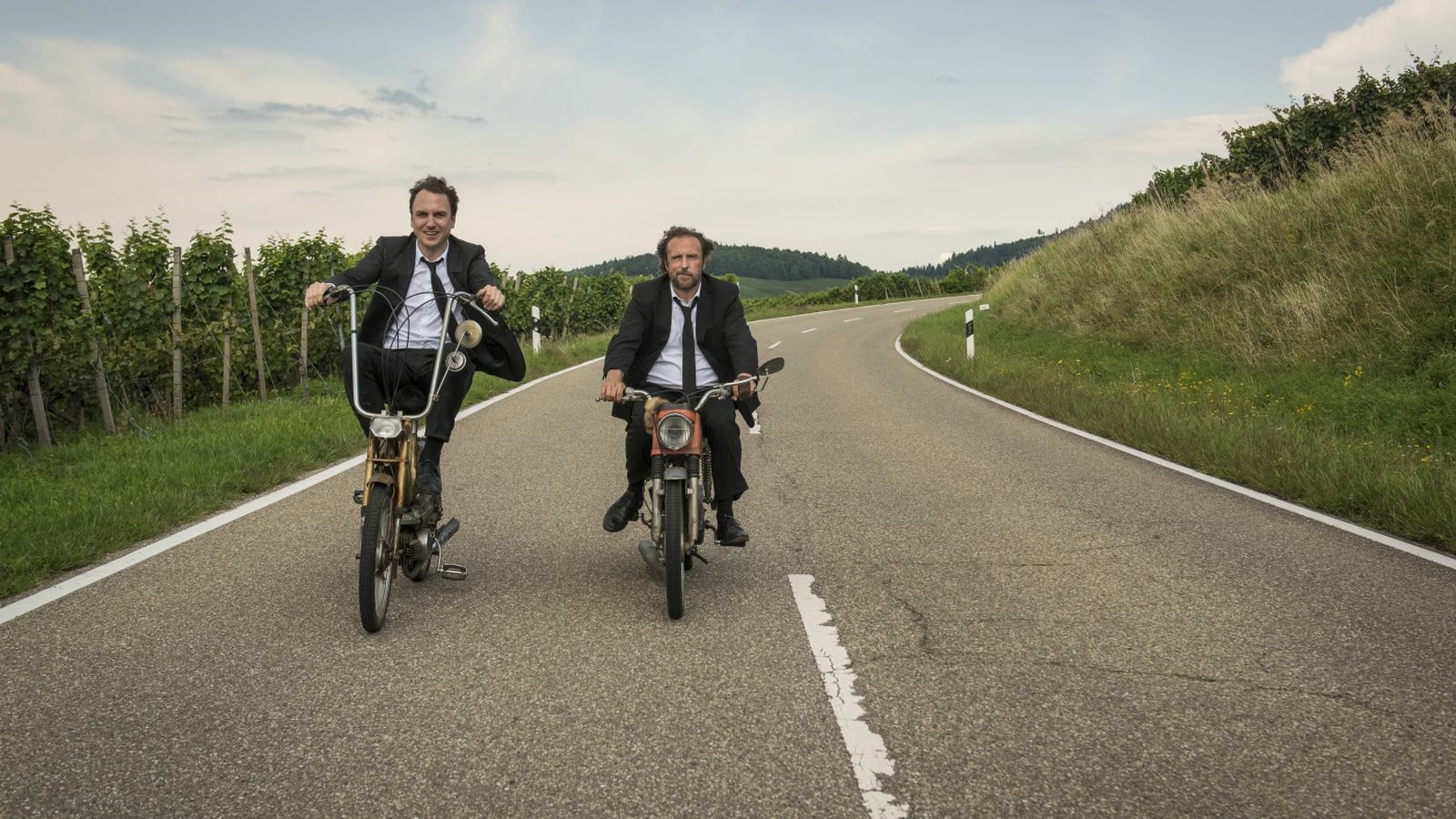 Nach 30 Jahren treffen sich die beiden Brüder Georg (Bjarne Mädel) und Christian (Lars Eidinger) auf der Beerdigung ihres Vaters wieder. Beide haben sich zunächst wenig zu sagen: Georg, der Tischler geworden ist und seinen Vater bis zuletzt gepflegt hat, und der weitgereiste Top-Manager Christian, der nach Jahrzehnten erstmalig zurück in die Heimat kommt. Doch nach einer durchwachten Nacht mit reichlich Alkohol beginnt die Annäherung: Beide beschließen, endlich die Deutschland-Tour zu machen, von der sie mit 16 immer geträumt haben - und zwar mit dem Mofa. Völlig betrunken brechen sie noch in derselben Nacht auf. Trotz einsetzendem Kater und der Erkenntnis, dass sich eine solche Tour mit über 40 recht unbequem gestaltet, fahren sie unermüdlich weiter. Während sie schräge Bekanntschaften machen und diverse wahnwitzige Situationen er- und überleben, stellen sie nach und nach fest, dass es bei ihrem Trip nicht alleine darum geht, einmal quer durch Deutschland zu fahren, sondern den Weg zurück zueinander zu finden. (Quelle: Verleih)